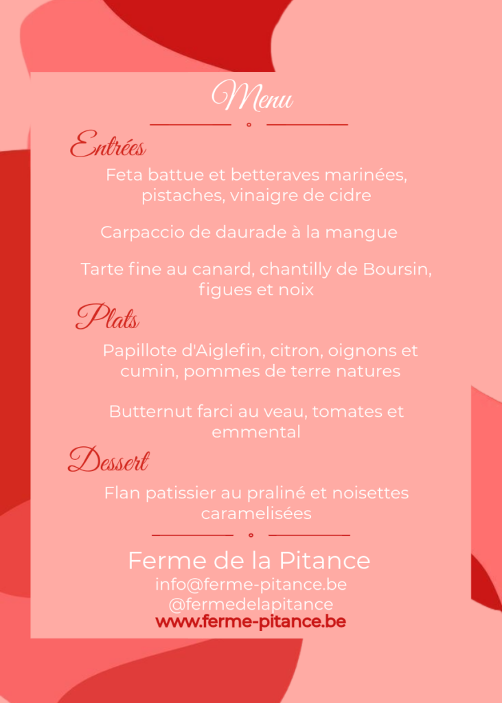 Vos réservations sont possibles jusqu’au vendredi 12h